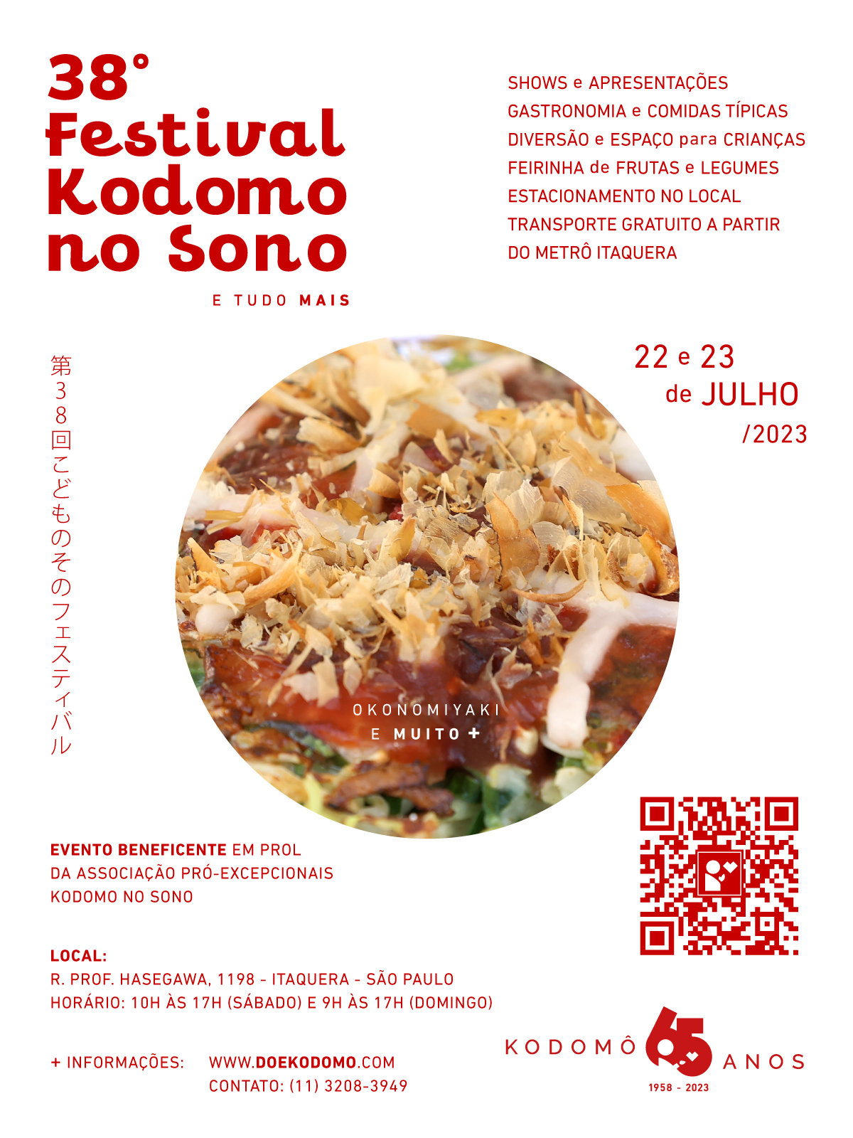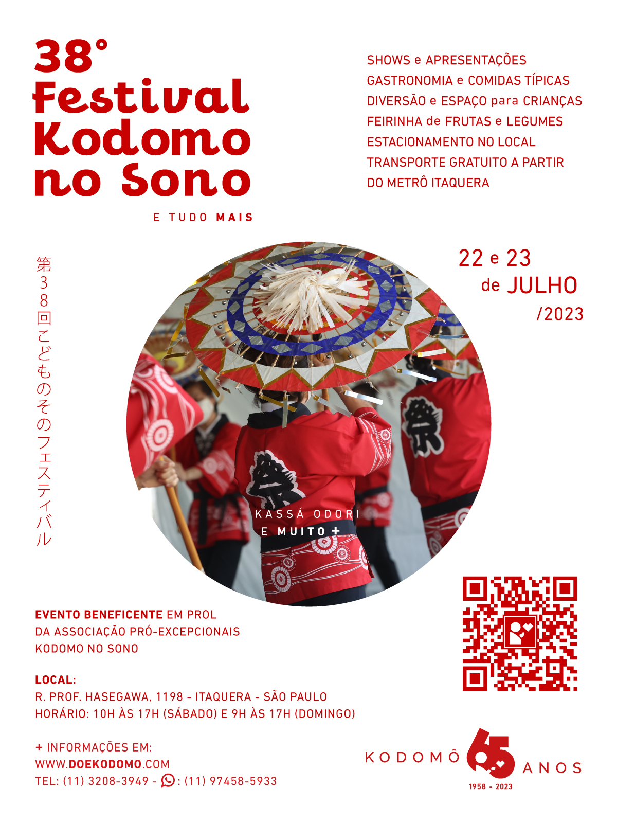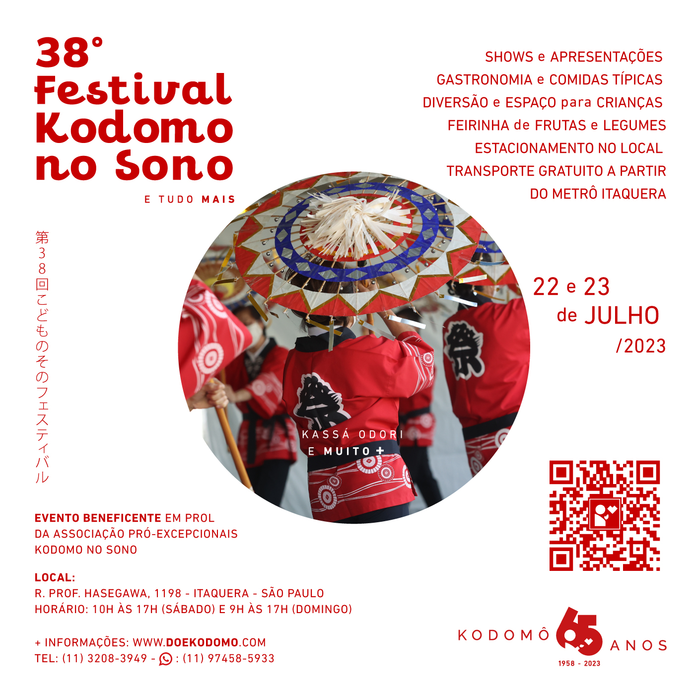 Nos dias 22 e 23 de julho a Associação Pró-Excepcionais Kodomo no Sono realizará seu 38º Festival Anual, em sua sede, em Itaquera.